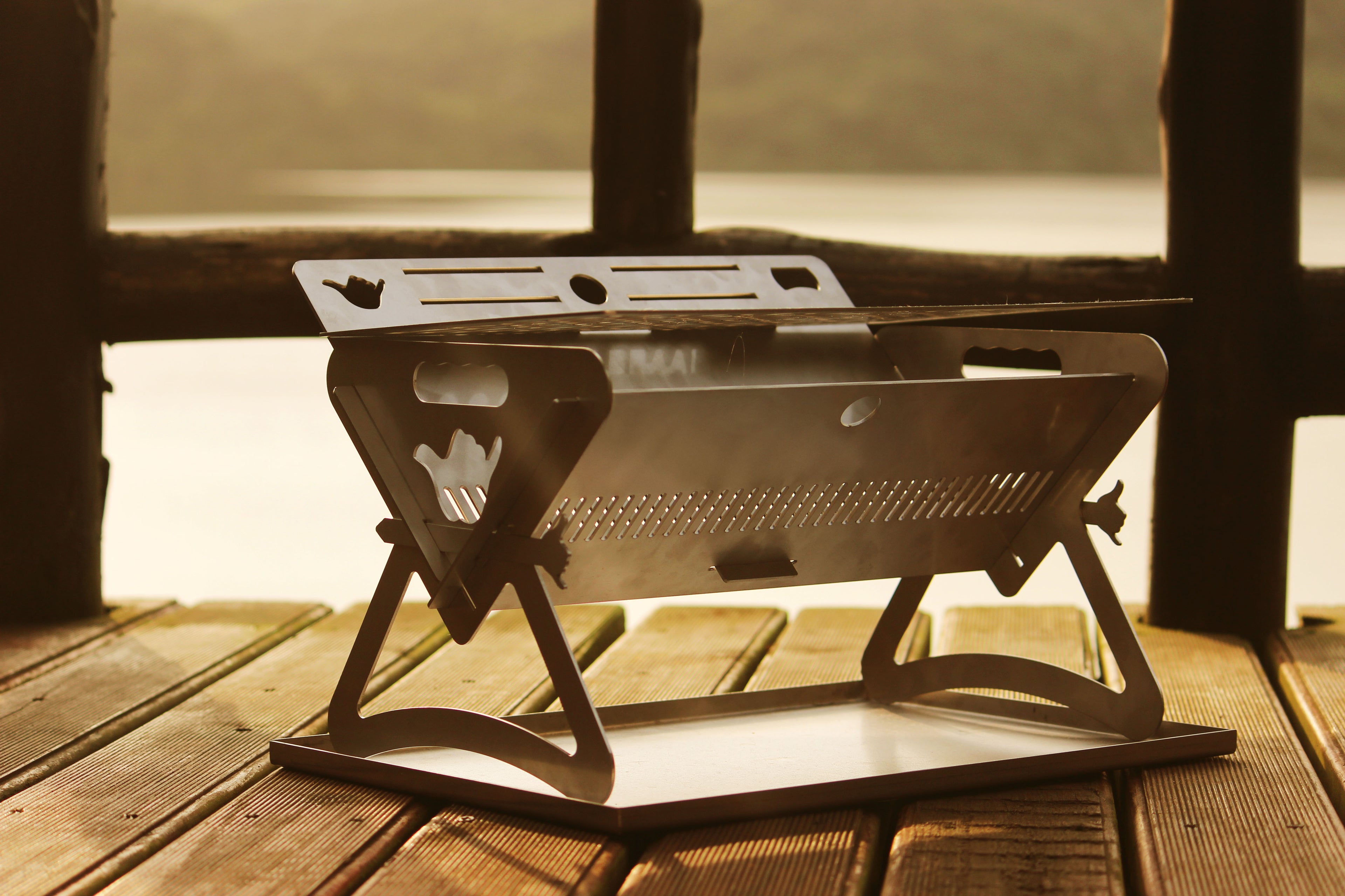 The Shot Braai comes with a canvas bag and tray for convenient carrying and storage. It also features a height-adjustable grid and a built-in bottle opener.